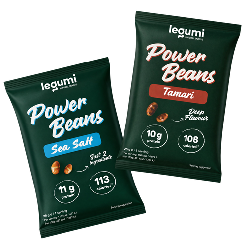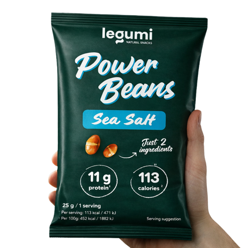 Legumi Power Beans hebben een sterke protein-to-kcal ratio van ongeveer 1:10, wat betekent: veel eiwit, relatief weinig calorieën. Ze worden gemaakt zonder additieven, zonder toegevoegde suikers en zonder zaadoliën, puur, simpel en krachtig.